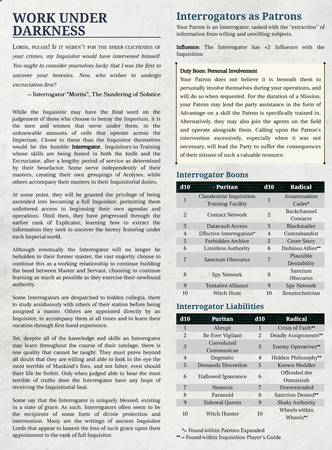 - 6 new Inquisition Ordo Patrons and an Interrogator Patron option.